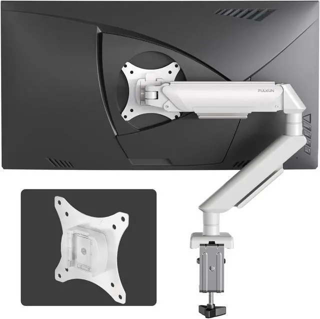 FULKUN Single Monitor Mount Stand - Full Motion Articulating Arm with Gas Spring,17-32 inch Computer Screen Mount, VESA 75x75/100x100, Clamp/Grommet Base, Adjustable Stand & Tilt & Swivel (White)