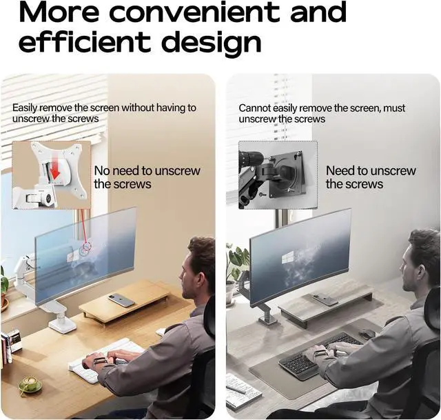 Quick 3-Step Setup: The monitor desk mount has a quick-install VESA head, so you can mount your 32 ultrawide monitor in seconds. The package includes clear, detailed instructions and labeled components for a smooth assembly. Plus, built-in cable management keeps your wires tidy and organized for a clean, streamlined workspace