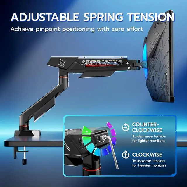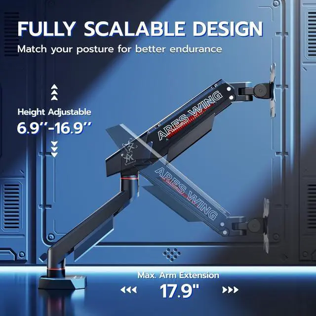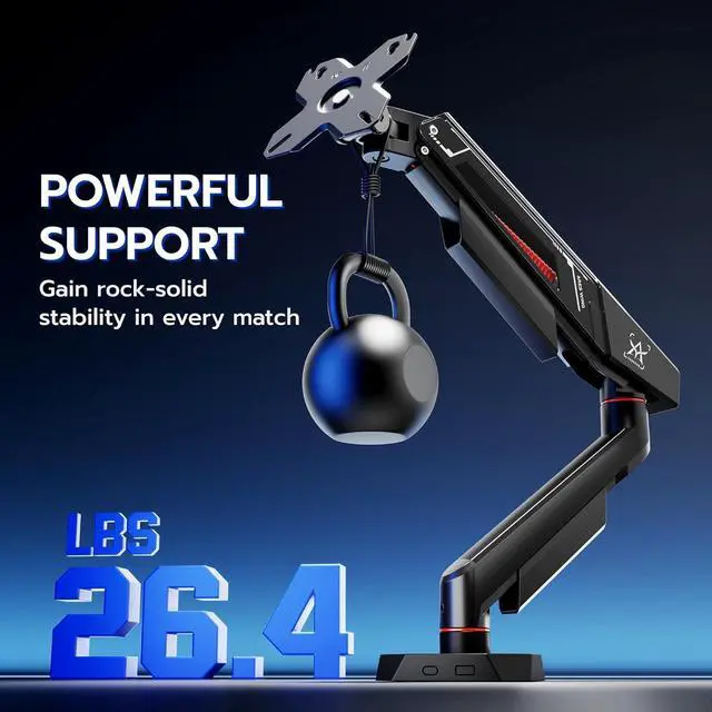 Integrated Cable Management - Maximize your desk space with a single-monitor mount featuring built-in cable management that hides wires, creating a clutter-free gaming setup.