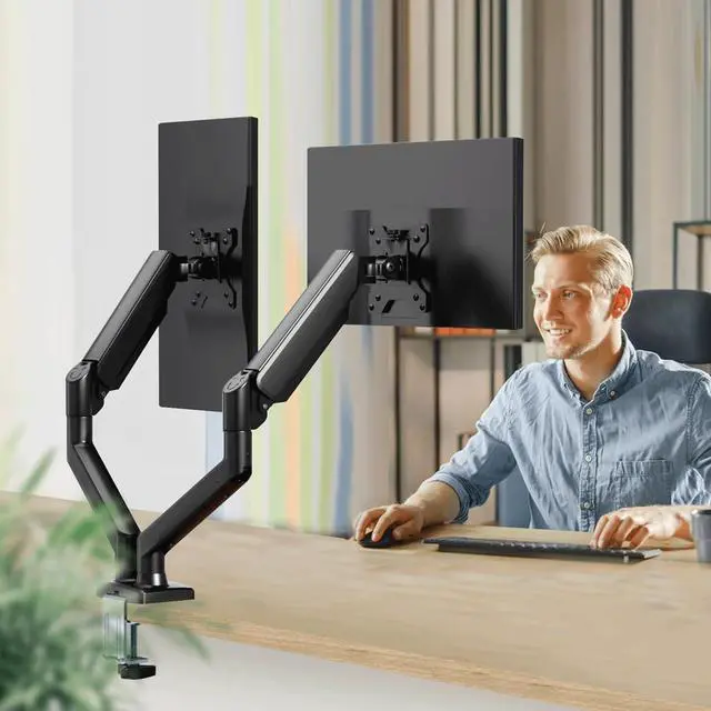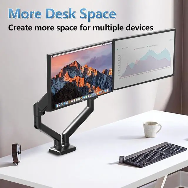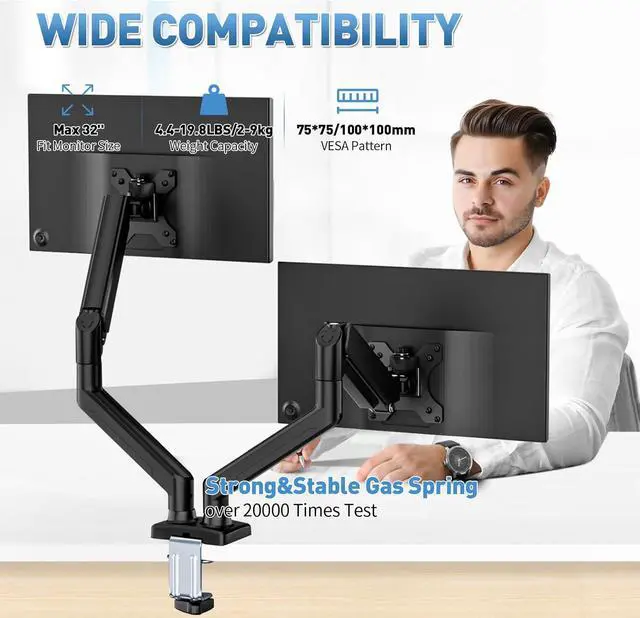 Compatibility:C-MOUNTS Dual Monitor Arms Mount for 17"-32" monitors (4.4-19.8 lbs each) with smooth gas spring arms. Perfect for office multitasking or immersive gaming setups. VESA 75/100mm