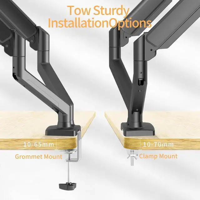 It also provides two desktop installation methods: C-clamp or grommet base. Both options ensure stable and secure fixation for your monitor,C-clamp fit for 0.6"-2.55" desk thickness range and grommet base fit for 0.4"-3.5".