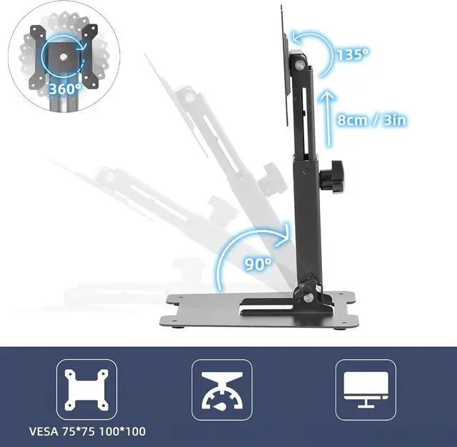 Angle Adjustable Vesa Stand - 360° Rotating Head,0°-135° Tilt,equipped with standard 75x75mm and 100x100mm VESA mounting holes.