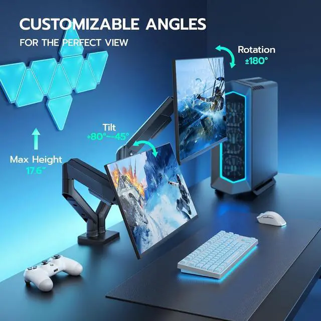 Integrated Cable ManagementMaximize your desk space with a dual-monitor mount featuring built-in cable management that hides wires, creating a clutter-free gaming setup.