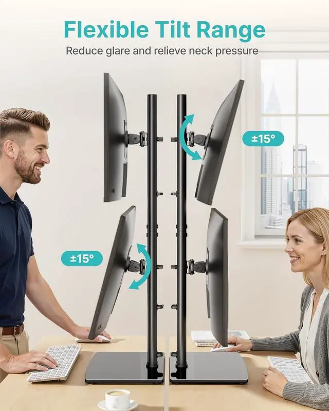 Dual Vertical Monitor SetupDesigned for 17"34" monitors, this vertical dual monitor stand supports two screens stacked top and bottom, helping you build a clean, space-efficient workstation for work, gaming, or content creation.