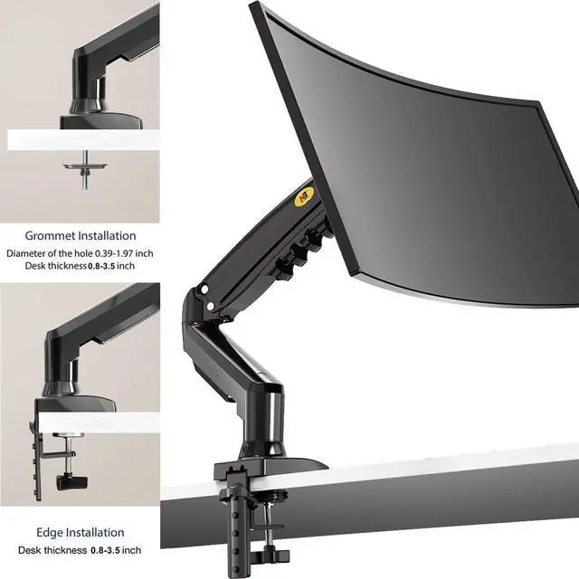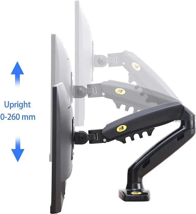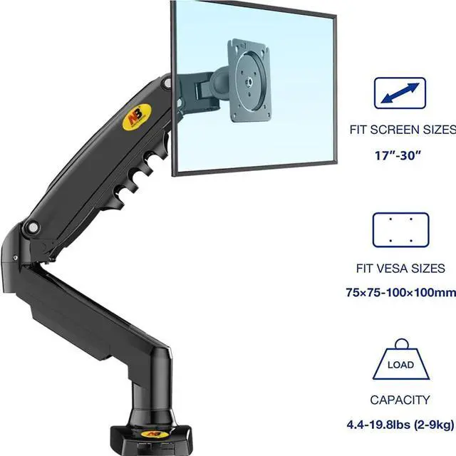 Monitor mount F80 frm NB AV MOUNT llws yu t mv yur mnitr in ny dirctin nd djust yur scrn t dsirbl hight nd ngl with just light tuch. Univrsl monitor arm fits ny scrns wighting btwn 4.4 nd 19.8 lbs nd VESA cmplint frm min 75mmx75mm up t 100mmx100mm mx. Gs strut r gs spring cylindr givs this dsk rm durbility nd full rng f mtins, djustmnts nd tilts. Prfct ccssry fr cnfrnc rms r tm shring infrmtin sssins - llws yur mnitr t rtt 360 dgrs nd swivl hrizntlly 180 dgrs plus. Tilt ngl djustbl frm +85 t -30 dgrs, upright lift distnc 10.2 inchs. Ergnmics t its bst - grt chic if yu spnd lng hurs in frnt f th scrn b it wrk r ply, gming r businss. Intgrtd cbl mngmnt fr cln cluttr-fr lk. Cms with ll ndd hrdwr fr sy instlltin. Grmmt instlltin r cn b instlld n dsk r tbl surfc dg.Grt ffic gift, must hv fr studnts, nlysts, trdrs; prfct fr vidcnfrncing r prsnting. All in ll, truly mzing cmbintin f dsign, pric nd qulity! Yu cn djust th dsk munt ONLY AFTER yu fix it nd hng scrn/mnitr n it! Th munt rquirs wight in rdr t b djustd.
