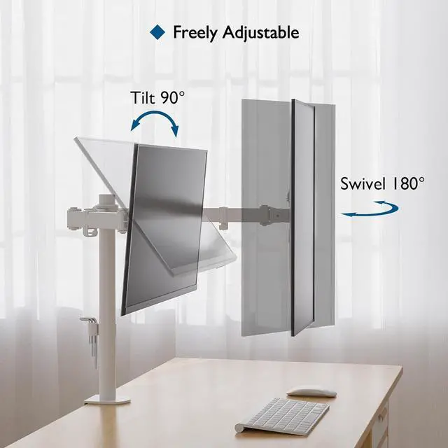 BONTEC Dual Monitor Stand is perfect for 13-27 monitor screens with a maximum load capacity of 10 kg for each arm. Suitable for all flat screen monitors with VESA sizes of 75x75 mm or 100x100 mm. It has tilt, swivel and height adjustment functions for optimal angle setting.