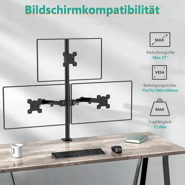 The three-monitor stand is multi-articular and rotatable, giving you more flexibility