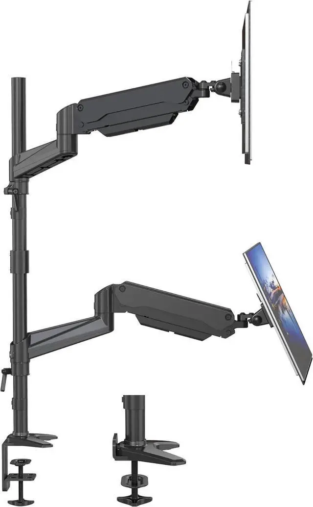 [ADVANCED ERGONOMICS] Outfitted with a premium gas spring system that permits effortless tension adjustments. With +85° to -90° tilt, ±90° swivel, and 360° rotation, you have full control over your monitors' positioning. Relieve neck and back strain with optimal height adjustments. For additional flexibility, the extension arms can be removed. The extra tall 31.8" pole promotes sit-to-stand transitions throughout the day.