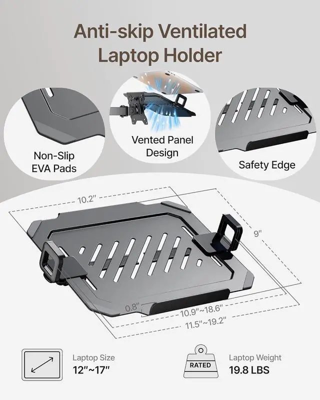 Free Up More Desk Space: This laptop mount has cable management which keep your cords neat, organized, and out of the way. You can relax in a more comfortable environment and enjoy working, playing games or watching videos
