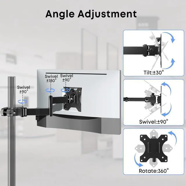 • Flexible Adjustments and Cable Management: Enjoy comfortable and productive working with Pole Mount Monitor Arm. The swiveling arm(s), free-tilting design and 360° rotation aroun