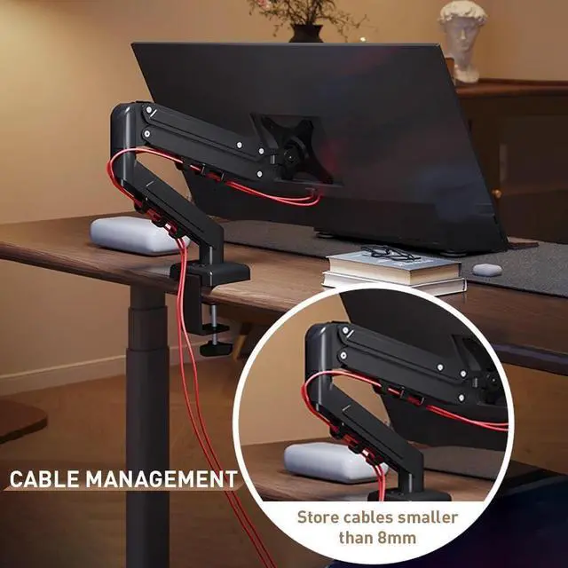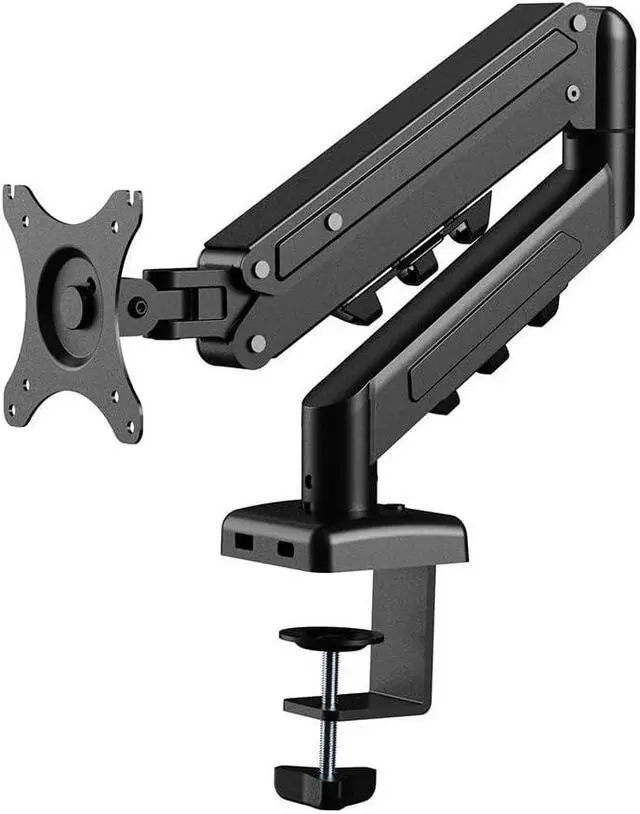 PrimeCables Single Monitor Arm Gas Spring for 17-32in Screens with Clamp and Grommet Base Rotate 360° for Portrait or Landscape Mode