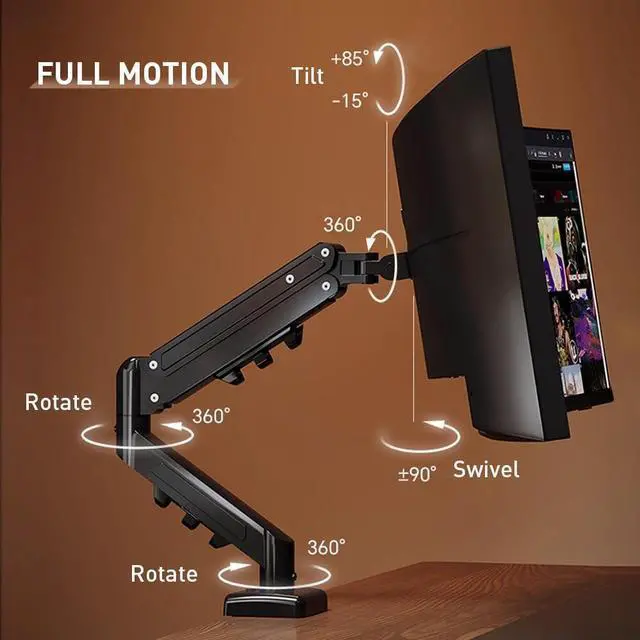 Full Motion: Tilt +85°~-15°, Swivel ±90°, Rotate 360° for portrait or landscape mode