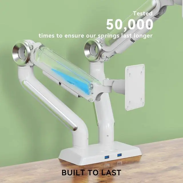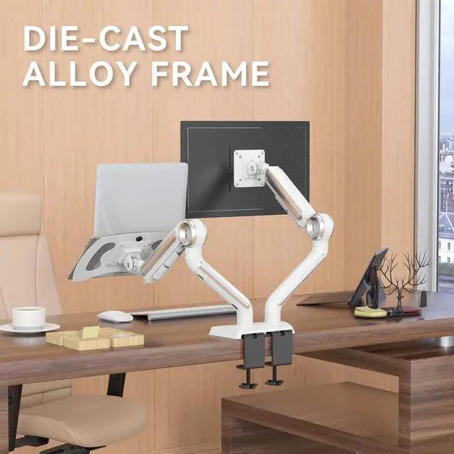 SHOPPINGALL Heavy Duty 2 in 1 Dual Monitor & Laptop Mount for 13 to 35 inch VESA Compatible Screens, Each Pneumatic Gas Spring Arm Supports up to 26.5lbs - SA-GE62U+D15-White