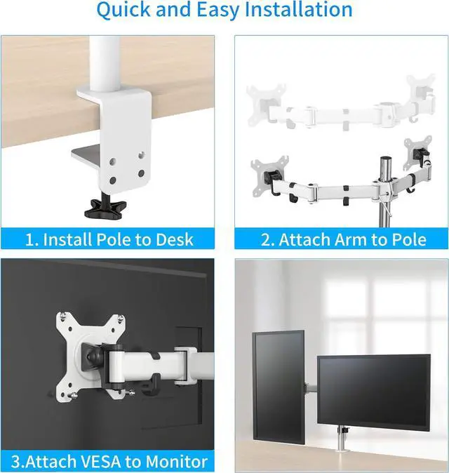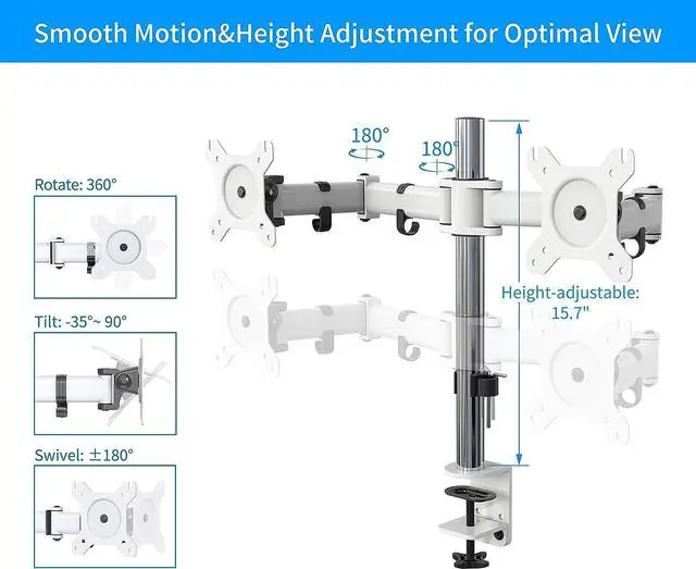 Holds Two 13-32inch Monitors C-Clamp Base and Grommet Base Size information: