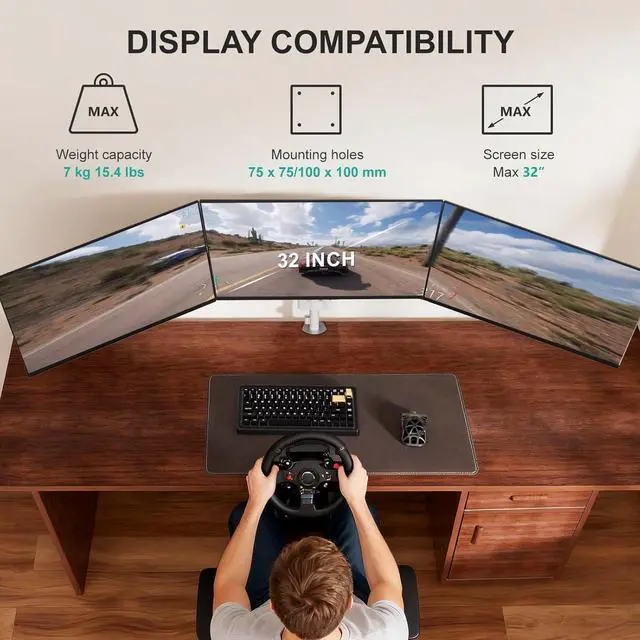 Compatibility: Fits LCD, LED flat screen TV and monitor up to 32". Support up to 15.4 lbs. Mounting Holes applicable 75 x 75mm or 100 x 100 mm. Two stage locking system is applicable to 3.3 c-clamp and 3.1 grommet base.