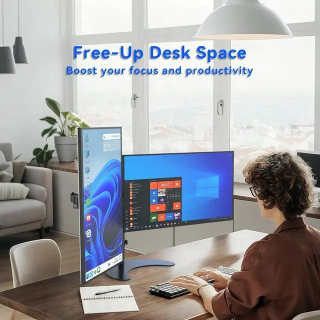 [ERGONOMIC ADJUSTABILITY] The adjustable arms can tilt +90° to -35°, swivel 180°, and 360° rotation and smooth (height adjustment up to 16"/41cm).. Easy rotation between portrait and landscape viewing positions. Designed to provide peace of mind to always have your monitors at an optimal height and angle, helps relieve the strain on your neck and back.