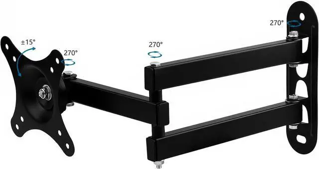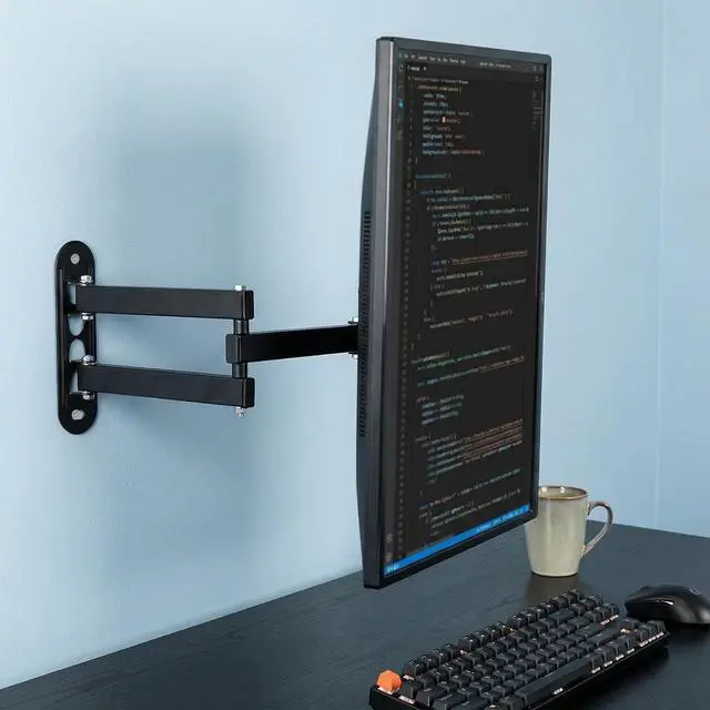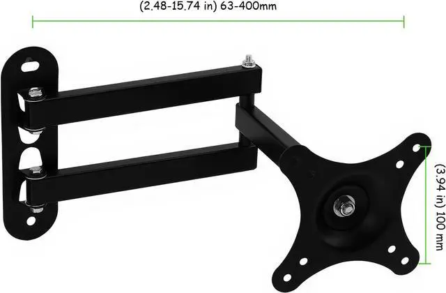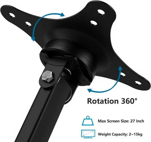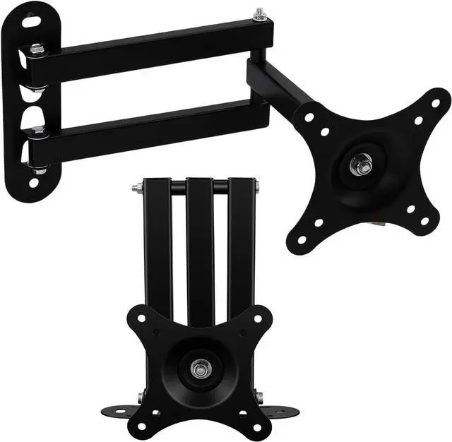 Material: Constructed from high-strength steel. Size: Fits 10 to 27 inch monitors, supporting up to 15kg weight. VESA compatible 100x100mm. Color: Black. Package Include: 2 x monitor wall mount. Ideal for standing desks, home offices, or gaming setups, this mount offers flexibility and comfort with its articulating features.