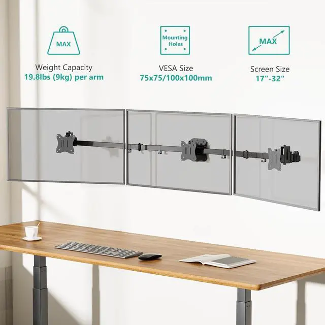 WALI Triple Monitor Wall Mount for 32" ScreensEach Arm Holds up to 19.8 lbs.Swivel Tilt Curved Wall Mount with Mounting Holes 75x75/100x100mm.(013ARMN), Black