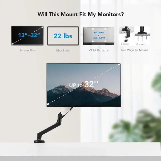 Friendly Tip: For a better experience, ensure your monitor weighs between 4-13.5lbs. Adjust the air pressure after attaching your monitor, whether it's a 34 inch monitor or a monitor 32 inch. If your single monitor mount isn't functioning as expected after adjustments, reach out to uswe'll respond within 24 hours.