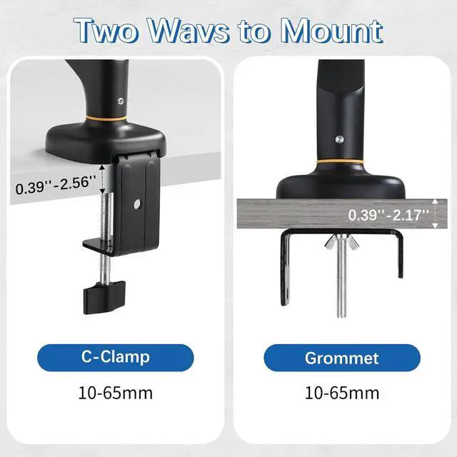 Easy to Assemble: In just 10 minutes, you can have this monitor mount ready to use. It includes a c-clamp and grommet base, compatible with tabletops up to 3.14" thick. The package comes with a detailed manual and all necessary tools, so even beginners can easily set up their monitor riser or monitor stand.