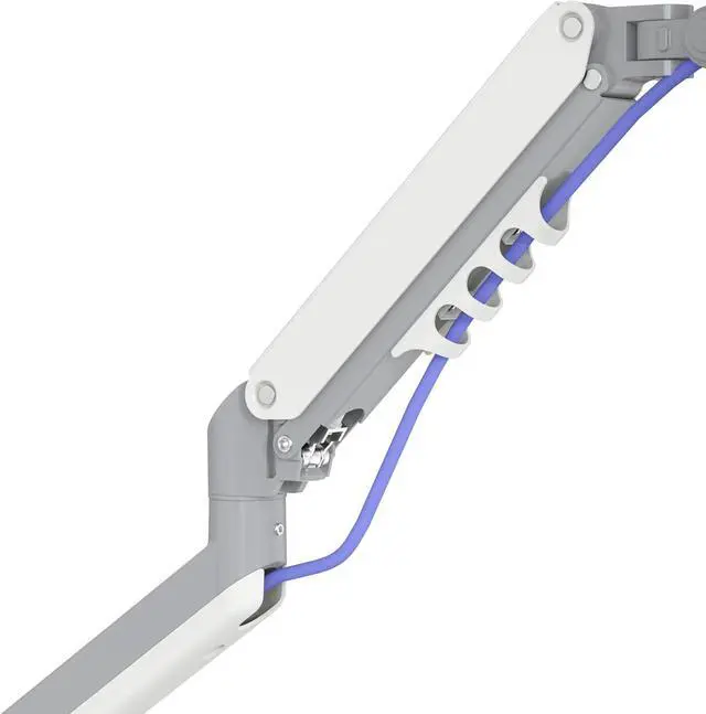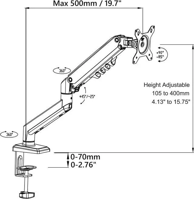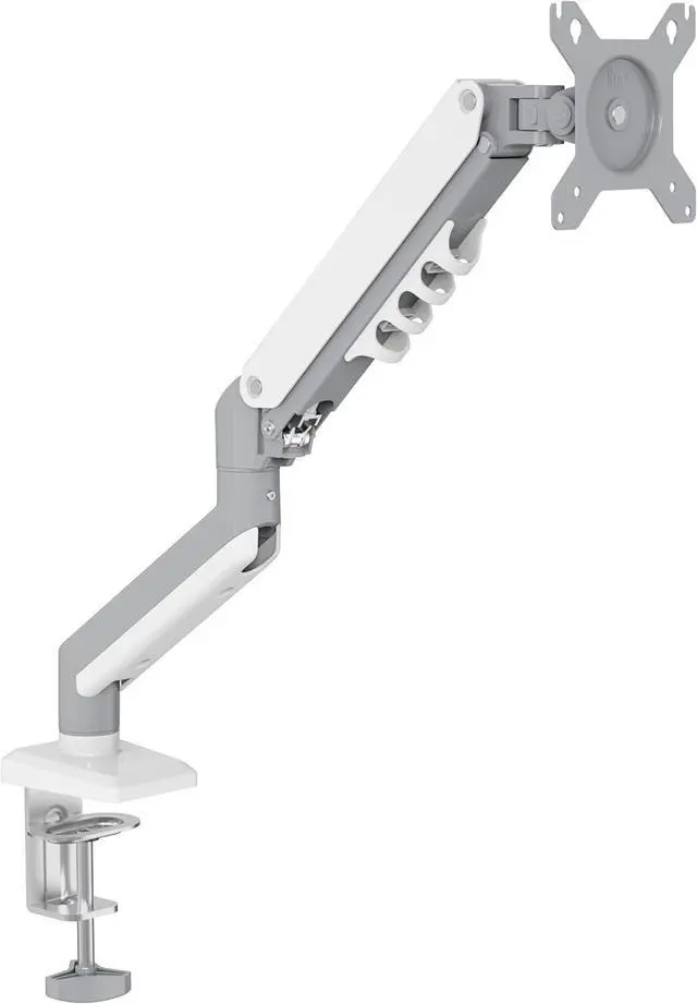 This is an ultimate Gas Spring monitor desk mount. Featuring high-quality aluminum construction, flexible joints, smooth height adjustment, a sturdy desk clamp, integrated cable management, topside installation, and more, this mount is ready to transform your workspace.