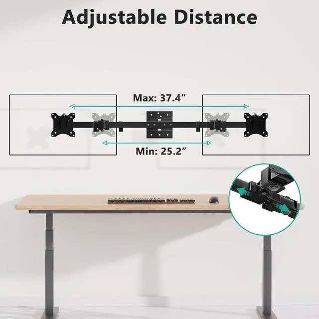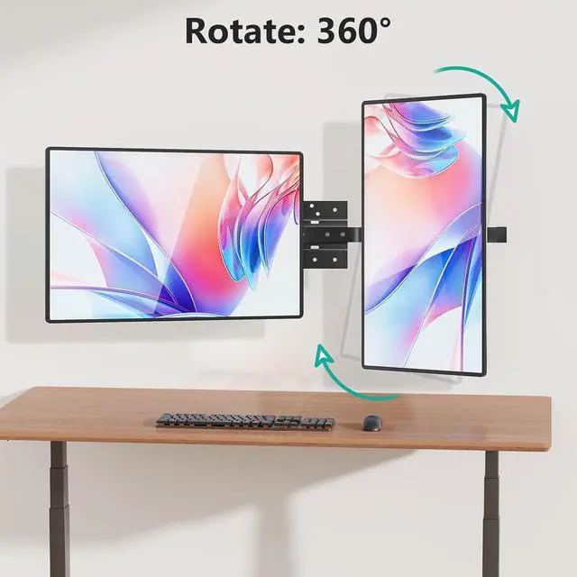 Curved arm design provides a larger adjustment range for both monitors and a better viewing experience. It is easy to adjust the viewing angle of each screen.
