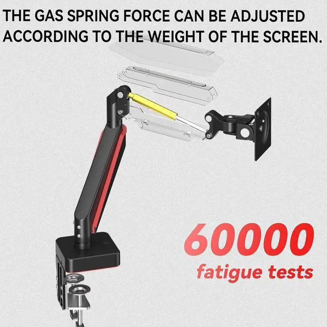 Friendly Tip: Please install the monitor first and then adjust the air pressure on the monitor arm for better up and down. For better user experience, the front of the monitor arm needs to be 4.4-44lbs. If your monitor arm still doesn't work properly after adjustment, please feel free to tell us and we will reply you within 24 hours.