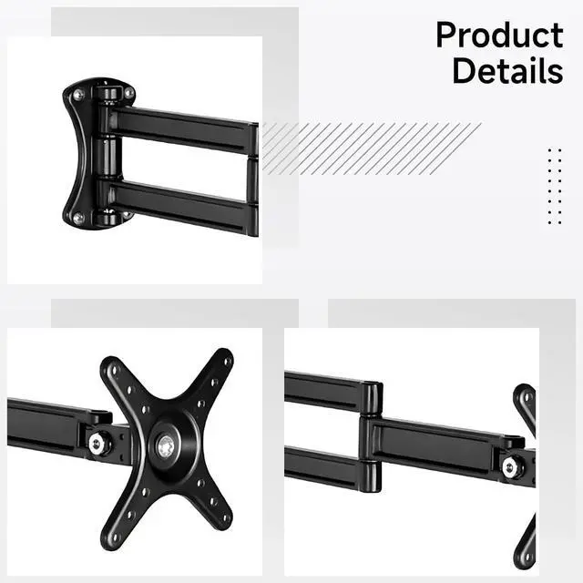 Adaptable monitor display: personalize your screen view using the ±90° tilt and swivel range, alongside a full 360° rotation; this wall mount folding monitor bracket is engineered for exceptional viewing flexibility and comfort