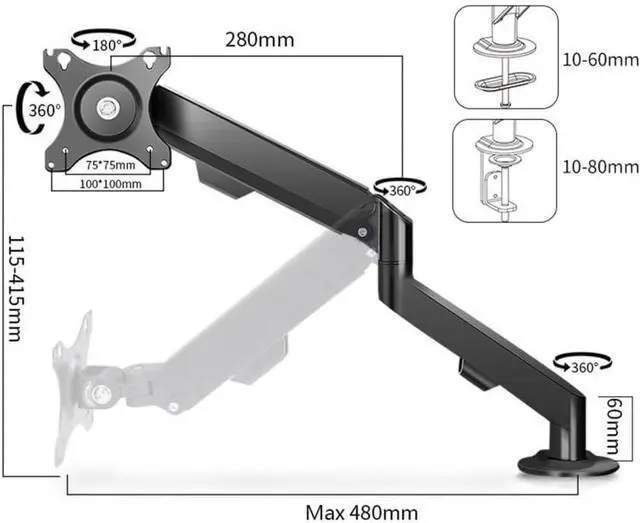 Hidden cable management can keep your desktop neat and tidy. Experience ultimate comfort and flexibility with this adjustable monitor mount