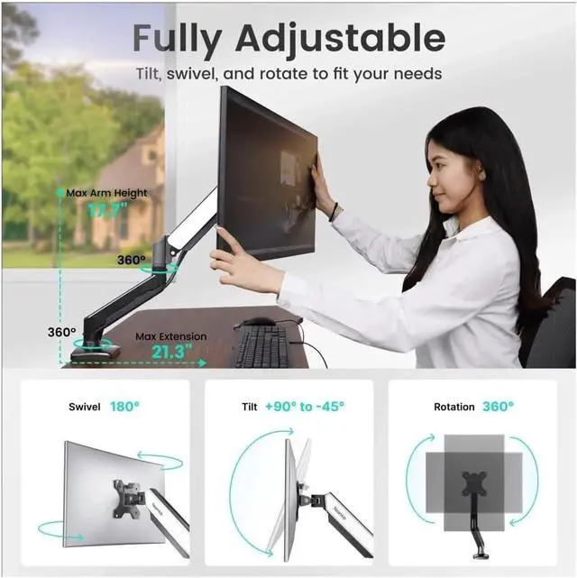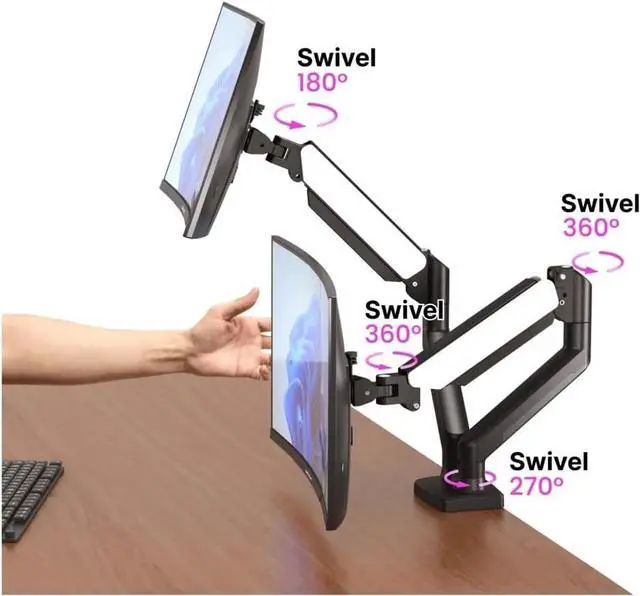 13-32 Inch Monitor Arm Dual Arm With C-Clamp & Grommet Mount,Flexible Adjustment Effortless Installation Monitor Arm