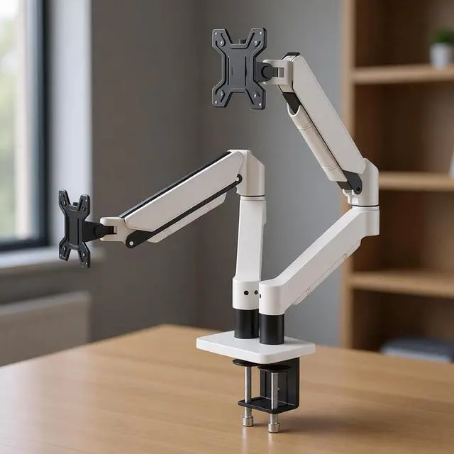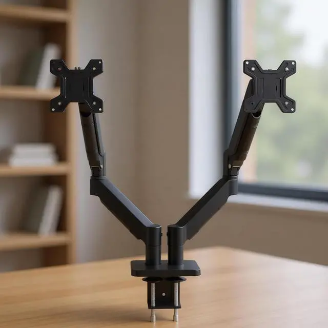 Pair of desk mounts for 13" to 32" monitors with individual direction control and vertical adjustment