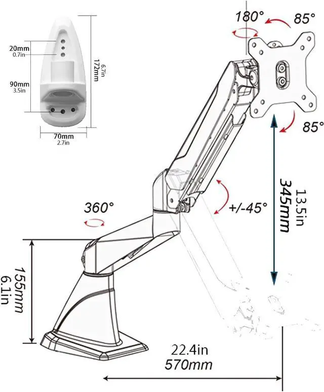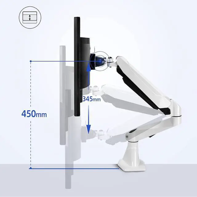 This fully dynamic monitor arm allows your monitor to tilt, rotate and rotate to find the best viewing angle that meets your needs; from landscape to portrait is just a piece of cake