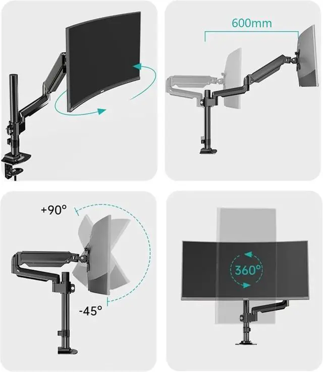 Our adjustable single monitor arm offers a wide range of movement, Monitor-Mount supports screen ratates 360° for landscape or portrait orientation, swivels 180° to share your displays. It can offer the perfect position for your gaming monitor or PC screen, Adjustable single-monitor-mount include ergonomic design can effectively alleviating posture and back issues.