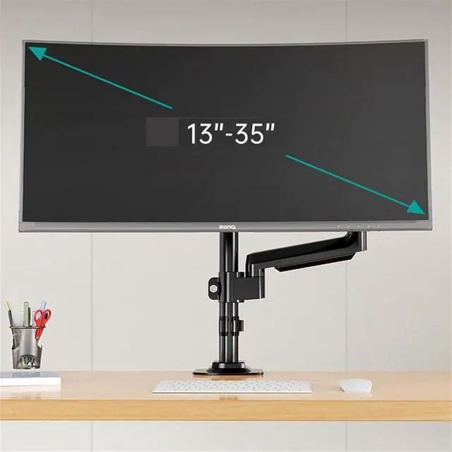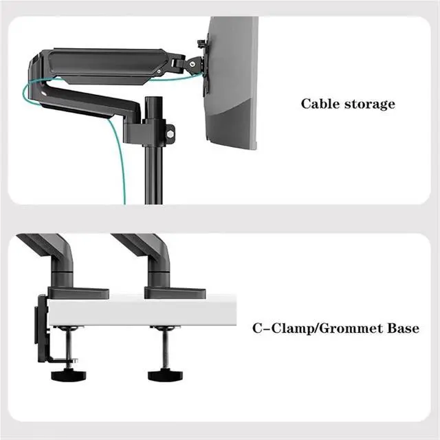 Setting up your single-monitor-mount is a breeze with our step-by-step guide. Whether you choose the monitor clamp or grommet monitor mount version, you'll have your stand ready in under 10 minutes, tools and hardware are included. This single arm monitor mount can fit desks thickness from 0.39"-3.34".