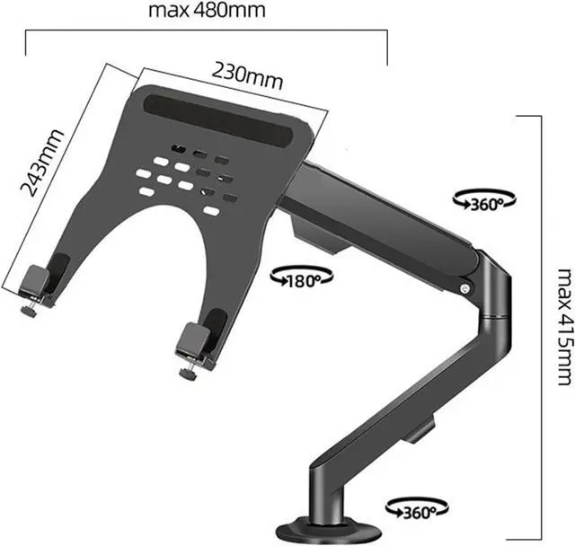 Universal Laptop Mount Desk: Hold one up to 10"-16" laptop or 17"-30" monitors. Each arm can hold 4.4-19.8lbs laptop or monitor with 75mm x75mm or 100mm x 100mm VESA mounting holes.