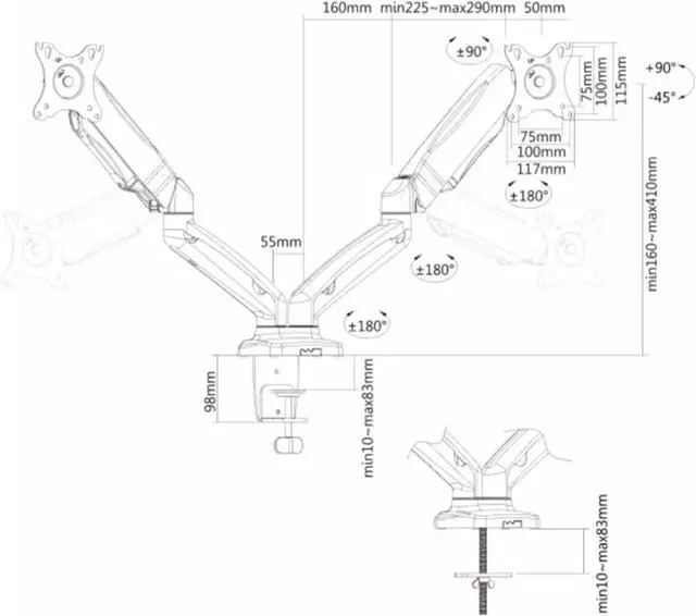 17"-32" Dual Monitor Stand for Desk, Adjustable Gas Spring Double Monitor Mount Holds up to 19.8 lbs, With VESA 75/100mm with C-clamp& Grommet