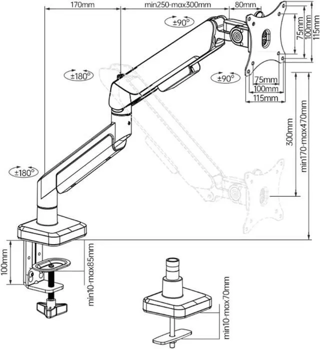 C-Clamp Base: within 10-85mm
