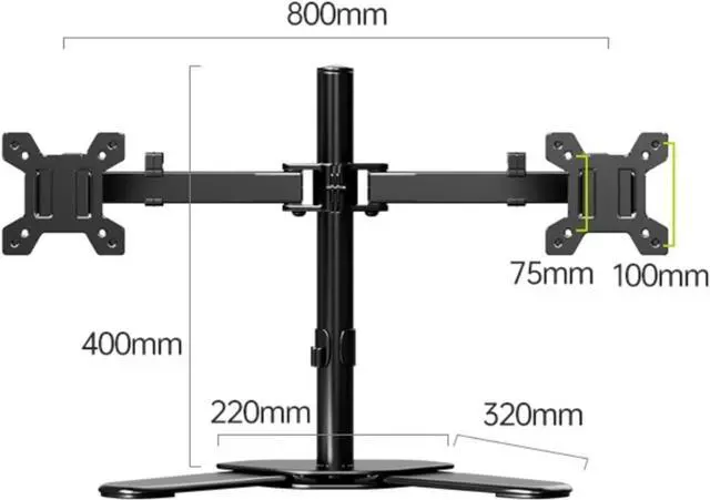 • Fits 27" Dual Monitor Stand for Desk - This freestanding dual screen monitor mount widely fits two 15" to 27" LCD LED monitors, with VESA mount 75x75 and 100x100mm, holds up to 17.6 lbs per arm. (Please verify your monitors size and weight are within our standard before purchasing)