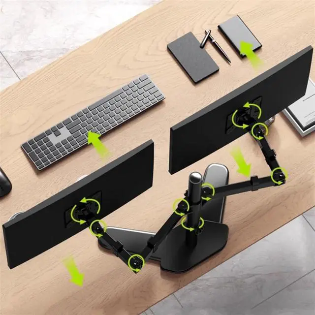 • Free Up Desk Space - The monitor stands for 2 monitors comes with clips on the arms and center pole for tidy cable management, keeping your cable organized and making your desk neat.