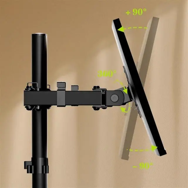 • Full Articulation - Adjustable mount offers +90° to -90° tilt, 180° swivel, 360° rotation, and height adjustment along the center pole. Warning: Please do not pull monitor(s) too far forward or backward beyond the stand's center of gravity, as this will cause stability issues.