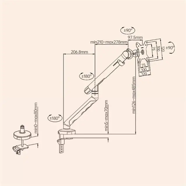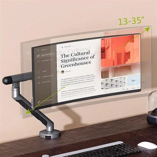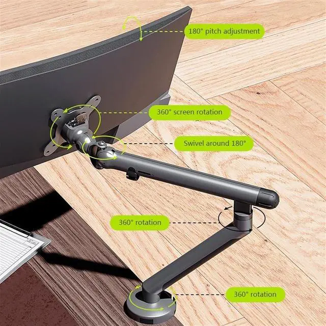 Adjustable for Different Angles: This single monitor mount adopts mechanical spring system that offers a wide range of movement. Your monitors enable effortless adjustment with +90°to -90°tilt, 180°swivel, and 360°rotation, creating the most comfortable viewing angle for your work or game.
