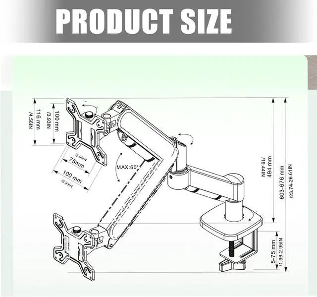 Featuring a sturdy structure that securely supports monitors weighing 2-10kg, this space saving desk mount is from cold rolled steel for stability and long