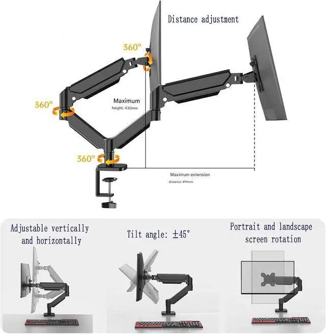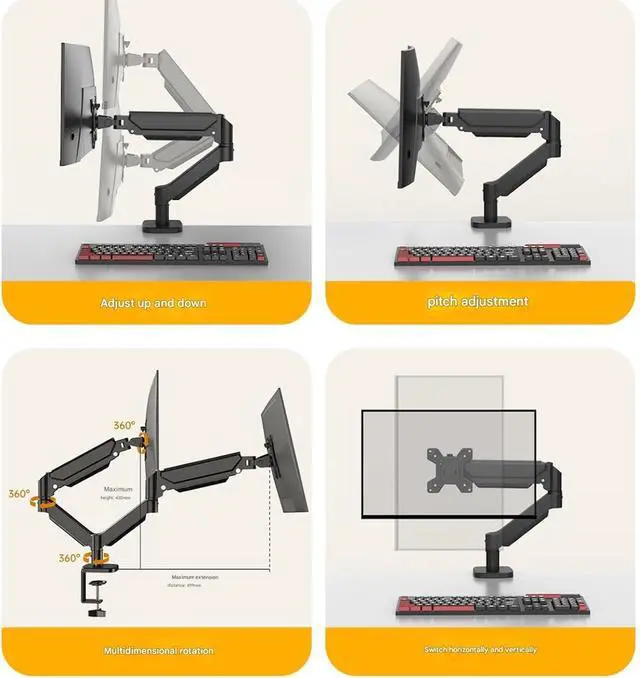 fully adjustableThe Monitor Arm Stand ensure easy positioning of your monitor in any desirable position, Adjustment is not stuck, supports high and low lift, front and back stretch, and screen rotation to find the best ergonomic position.