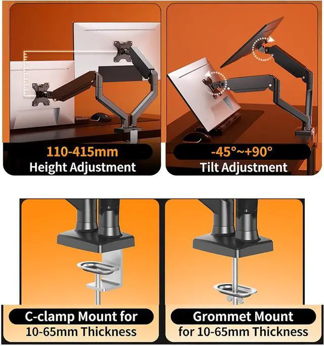 Easy Installation: Choose between clamp mounted or hole based setup for different desk types ( up to 80mm thick) Straightforward installation maintains neat cord organization