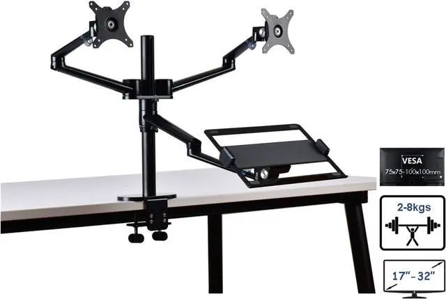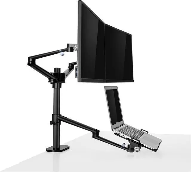 Monitor Arm, Aluminum Height Adjust Desktop Dual 17-32 Inch Monitor Holder+12-17 Inch Laptop Holder Stand Full Motion Triple Mount Arm(Nero-1)