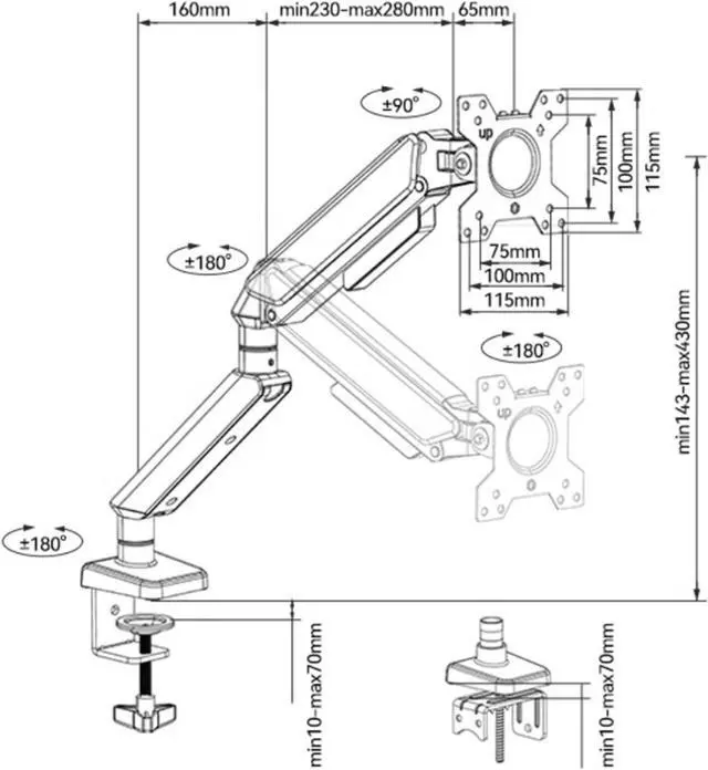 Product Name: Pneumatic Spring Single Monitor Desk Mount