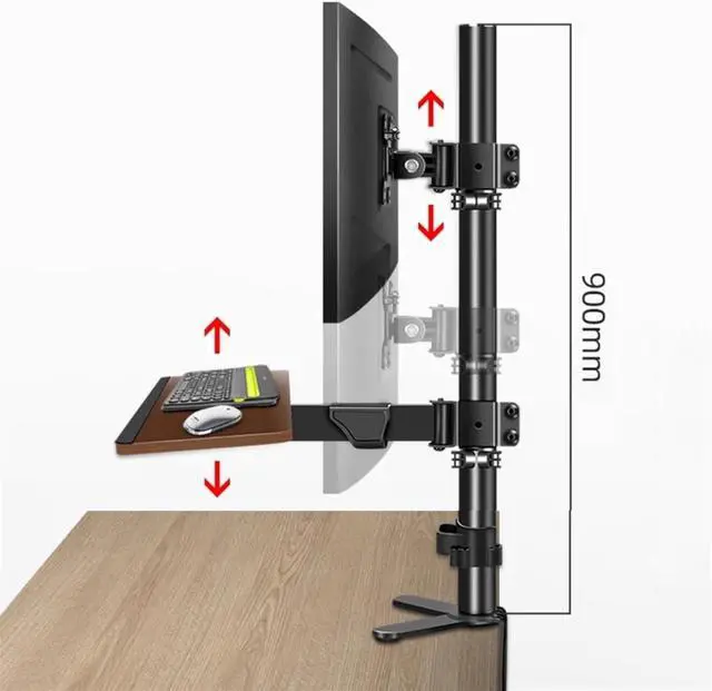 • Fully Adjustable and Space-saving solution - This monitor arm for desk can tilt +45°/-45°, swivel ±90° and rotate 360°. The keyboard tray also can be adjusted in multiple directions0°-45° angle adjust, horizontal swivel 360°), brings you an ergonomic life. The monitor mount with pole frees up more valuable desk space