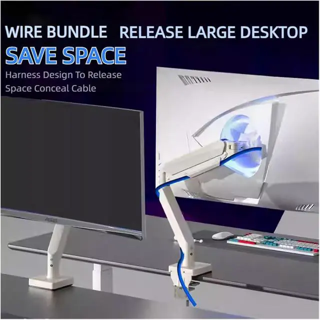 Cable management tunnels free desk space | -45°~+90° tilt for competitive/creative workflows