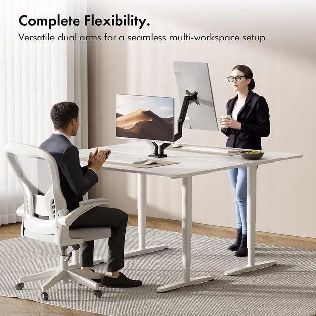 Our monitor stand keeps your screens securely in place while allowing smooth and effortless adjustments. The dual monitor mount is cycle tested 20,000 times to ensure long-lasting performance for your workspace.