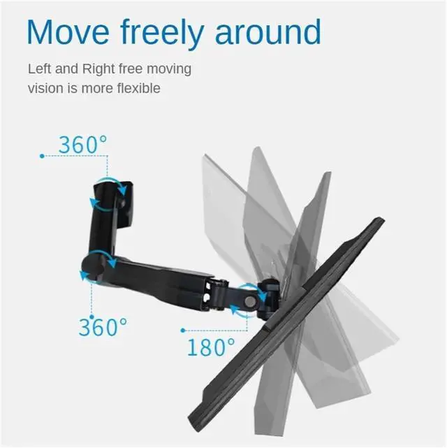 This monitor desk stand arm requires no mounting, offering a hassle-free setup without drilling or complex installation. Designed with full motion functionality, it allows for flexible swiveling, tilting, and adjustment to achieve the perfect viewing position. Suitable for home or office use, it provides secure support for monitors and TVs, fitting seamlessly into various workspace configurations. The versatile design works with common display types without the need for specific holes, combining convenience with functionality for everyday use.
